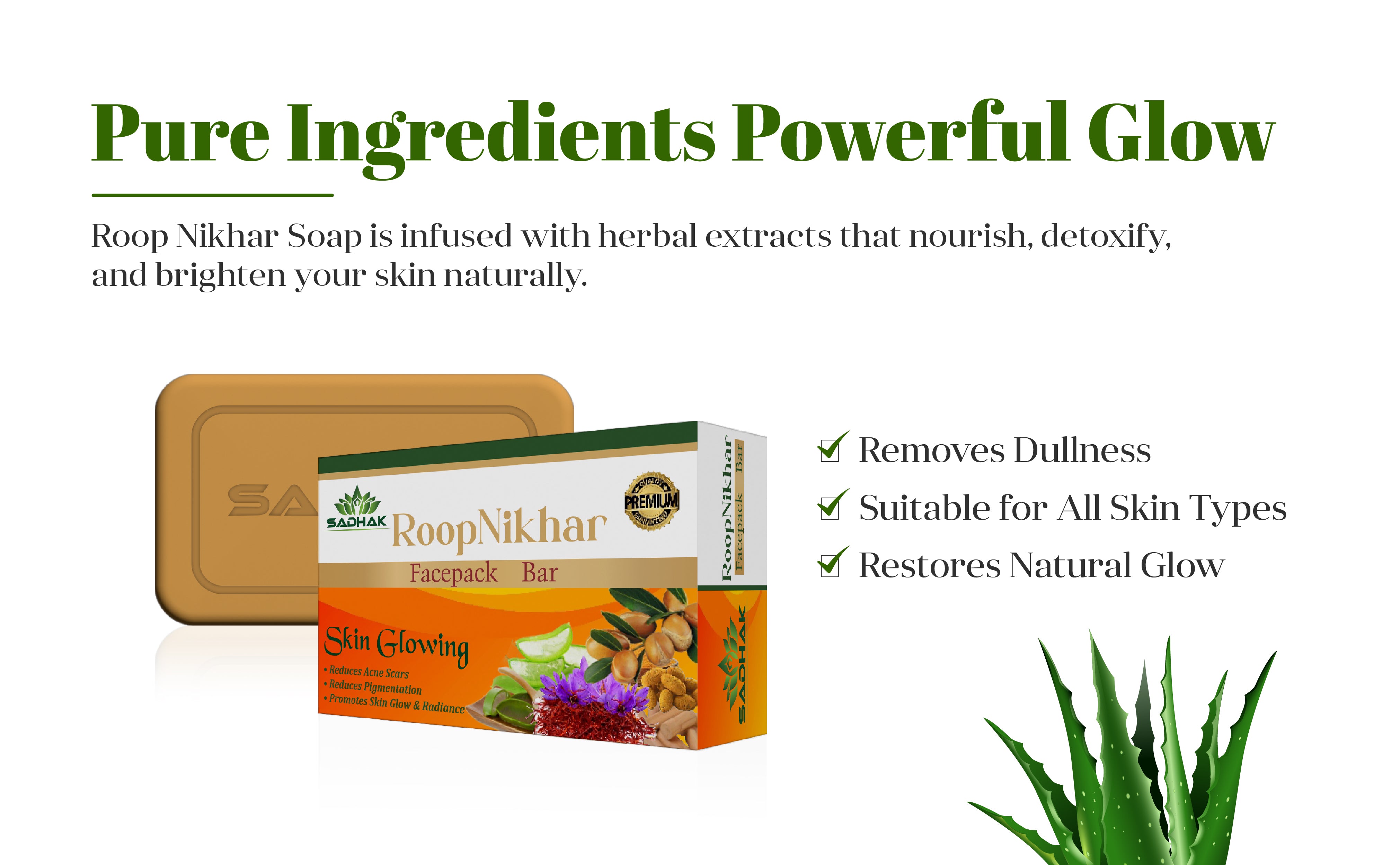 Roop Face Pack is made with natural herbs that help your skin look fresh, bright, and clean. It removes dark spots, pimples, and tan, and gives your face a healthy glow.